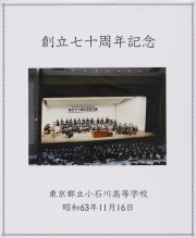| 2017年3月22日 (水) 19:49 | 005 C 016 0003-2.jpg (ファイル) | 935キロバイト | Koishikawa Admin 11 | 創立七十周年記念式典の様子 学校資料室保管のアルバムより | 1 | |